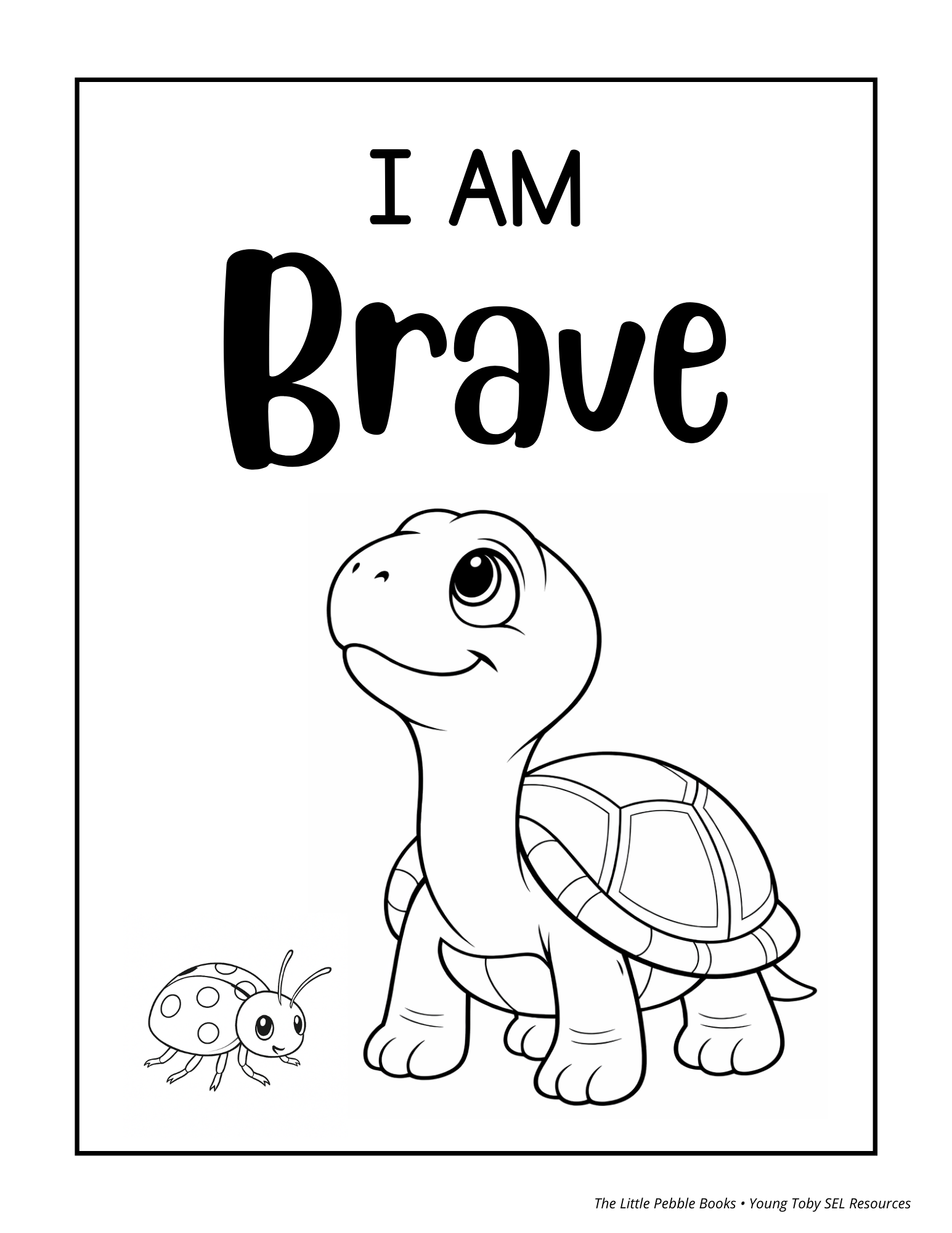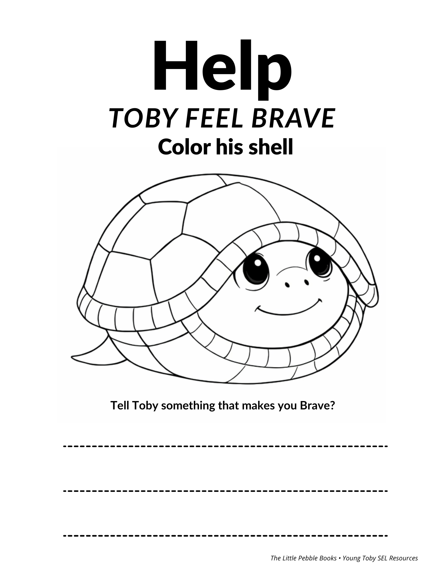 Help Toby feel brave by coloring his shell and using the page as a gentle conversation starter about comfort, courage, and safety.