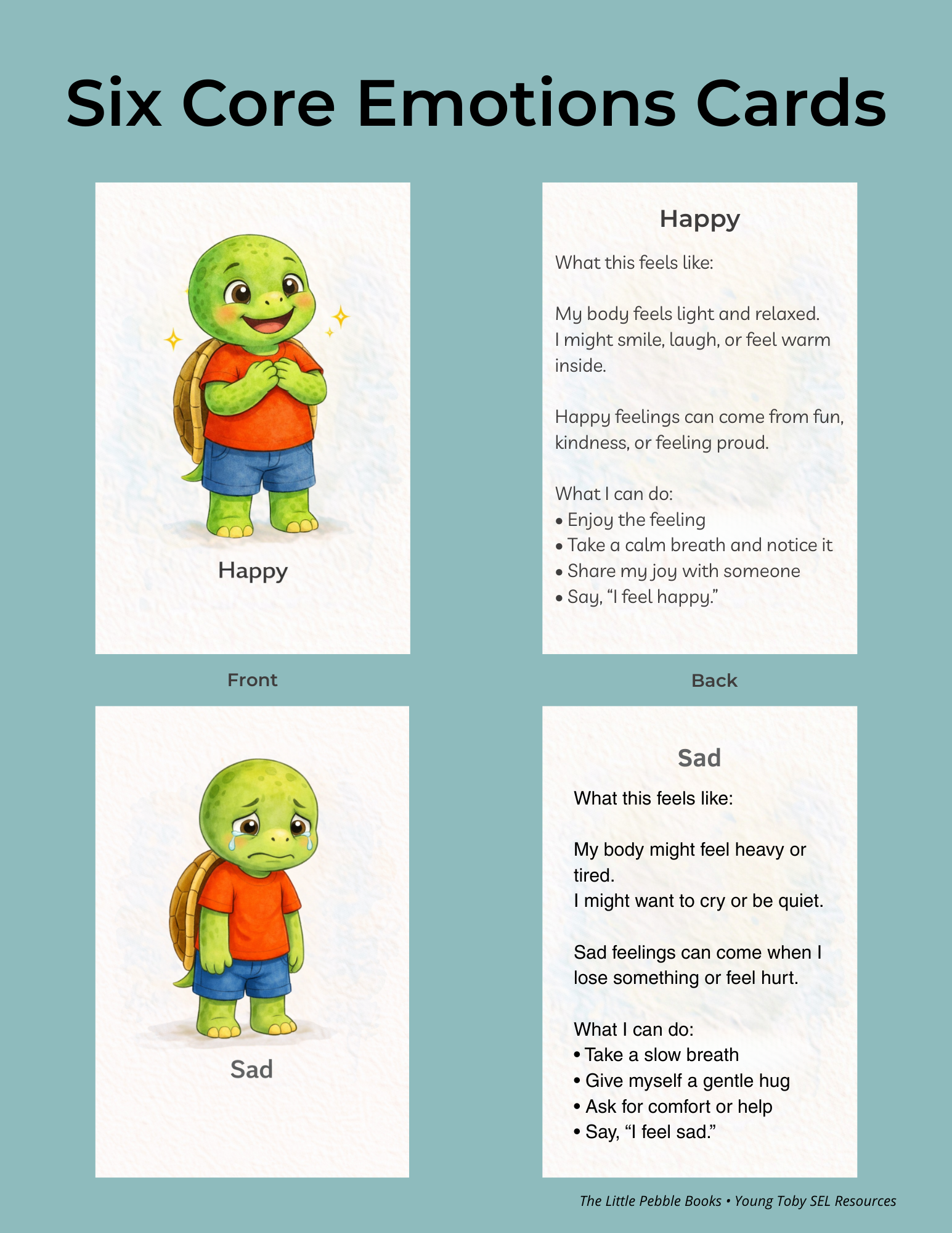 Classroom walls, calm corners, counseling offices, kitchen tables — these tools work wherever children are.